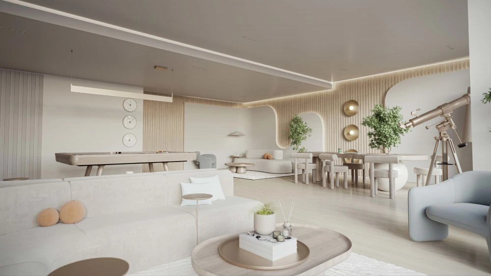 בפנים, בתי המגורים משדרים יוקרה מודרנית מאופקת וחן רגוע ומובטח, עם פלטה קלילה, אילמת, צורות חלקות ומתפתלות ומרקמים קרירים ומעודנים בהשראת טרוורטין.לאורך כל הדרך, המושג "פלא נצחי" משלב אלגנטיות קלאסית עם אלמנטים עדינים של חקר וגילוי. חללי הפנים חמים ומתוחכמים וכוללים חומרים וגימורים אלגנטיים לאווירה שלווה ומסבירת פנים.